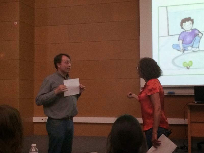 Por mi profesión actual y espero que la de por vida, porque como sabéis disfruto de mi trabajo como una enana en un parque infantil, los talleres que más me llamaban la atención era el de juego y el de adaptación de material, que lo impartían Anabel Cornago y Esther Cuadrado.